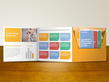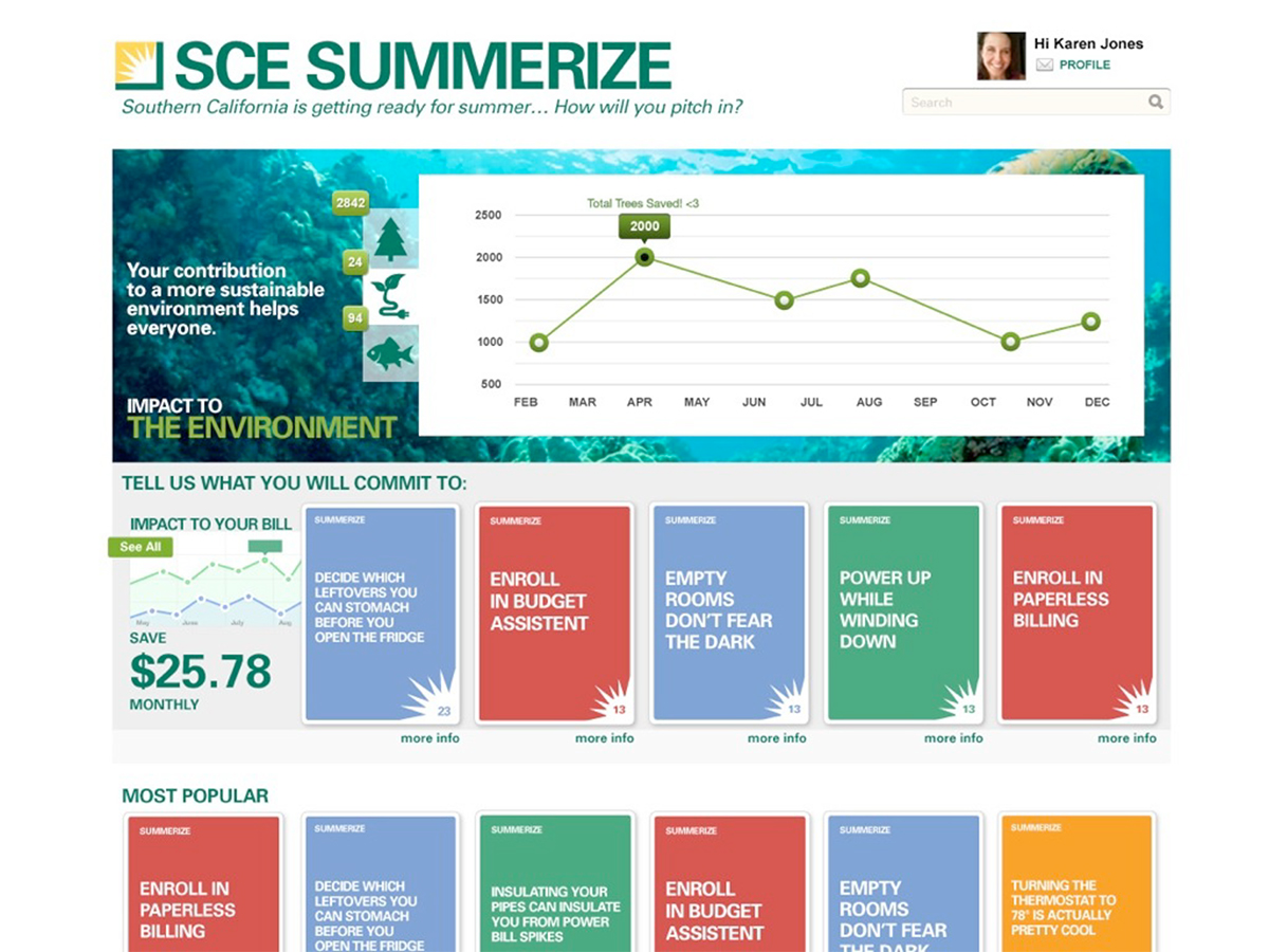 Rather than spending marketing dollars to get people to go somewhere, we built useful facts and tips into the marketing itself. To reach them in the home we developed a direct mail card system that could be leveraged by families to make reducing energy usage a fun conversation. We envisioned attaching this system to an online experience that would allow consumers to visualize the difference they were making.