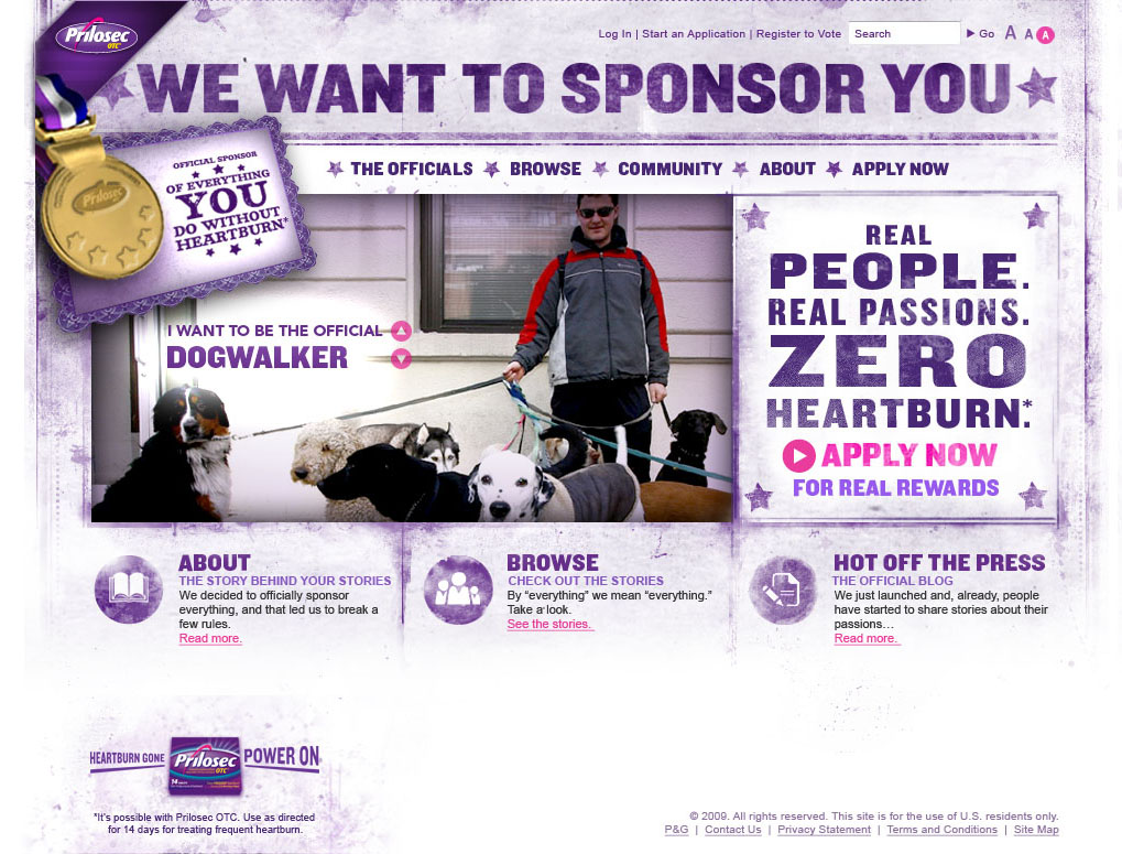 Prilosec had always been a big sponsor of Nascar which targeted only one demographic. We flipped the idea of sponsorship on its head by creating a program that sponsored everyday people for their passions. This allowed us to create a conversation through their individual social networks that began with their own passionate endorsement of the brand.